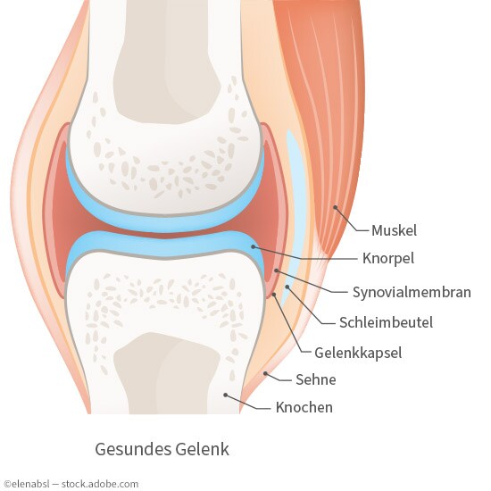 Ein Gelenk ist die bewegliche Verbindung zweier Knochen, die einen ungehinderten Bewegungsablauf garantiert. Jedes Gelenk ist von einer Gelenkkapsel umgeben, welche die miteinander agierenden Knochenenden nach außen hin abschließt. Um den reibungslosen Ablauf einer Bewegung zu gewährleisten, sind die Knochenenden von einer glatten und gleitfähigen Knorpelschicht überzogen. Zusätzlich ist der schmale Gelenkspalt zwischen den Knorpelschichten vollständig von der sogenannten Gelenkschmiere (Synovia) ausgefüllt. Sie verbessert nicht nur die Gleitfähigkeit, sie spielt außerdem eine wichtige Rolle in der Nährstoffversorgung des Knorpelgewebes. Da der Knorpel selbst nicht durchblutet wird, erhält er alle wichtigen Nährstoffe ausschließlich über die Gelenkflüssigkeit. Produziert wird die Synovia in der sogenannten Synovialmembran.