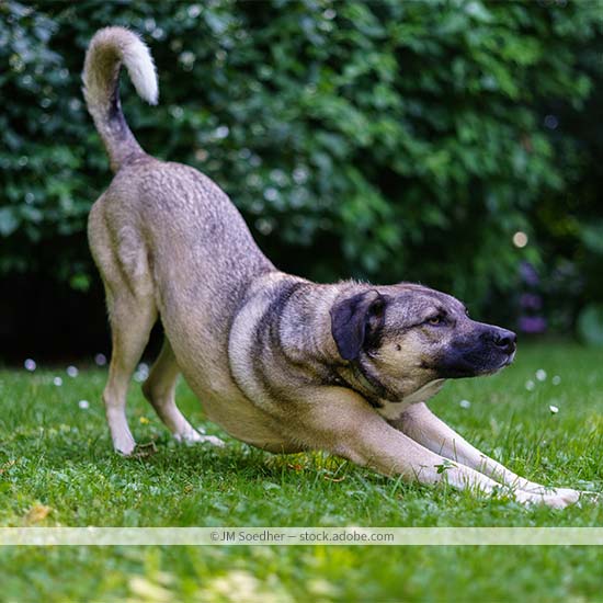 Ein Risiko für die Entstehung degenerativer Gelenkerkrankungen ist z. B. das Alter des Hundes. Im Laufe der Jahre verliert der Knorpel an Elastizität und Flüssigkeit, sodass die Nährstoffversorgung nicht mehr optimal gewährleistet ist – die Abnutzung überwiegt. Auch Hunde großer Rassen neigen zu Gelenkproblemen, da die Gelenke durch das hohe Körpergewicht dauerhaft stärker belastet werden. Entsprechendes gilt natürlich auch für alle übergewichtigen Tiere. Gefährdet sind aber auch die Extremsportler unter den Hunden. Sport und Bewegung sind zwar wichtig für die Gelenkgesundheit, falsches oder zu intensives Training schadet aber mehr als dass es nutzt!