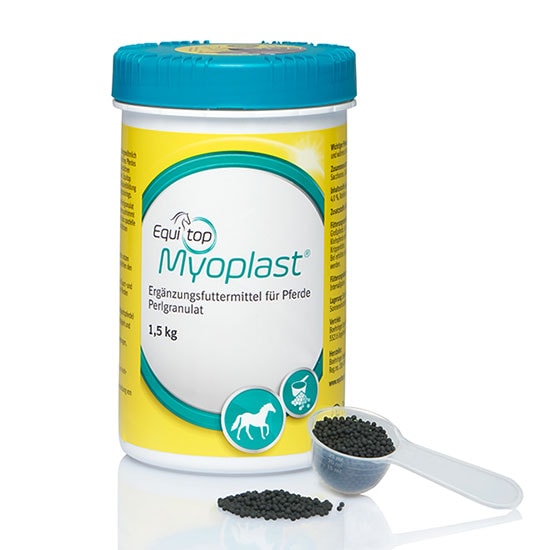 Equitop Myoplast® ist ein hochwertiges Ergänzungsfuttermittel, das Ihr Pferd aktiv und auf natürlichem Weg beim Aufbau seiner Muskulatur und deren Funktionen unterstützt. Die in Equitop Myoplast® enthaltenen pflanzlichen Proteine versorgen die Muskulatur mit 18 Aminosäuren in einzigartiger Zusammensetzung und hoher Konzentration. Muskelaufbau und -funktion werden gefördert, Rittigkeit verbessert sowie Kondition und Leistungsfähigkeit gesteigert.