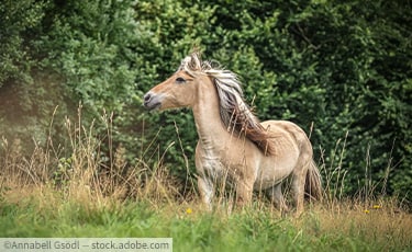Im oben genannten Beispiel kippt der Mähnenkamm des Norwegers bereits zu einer Seite über. In diesem Fall erreicht das Pferd den höchsten Cresty Neck Score. Dieser beschreibt die Ausprägung des Fettanteils am Mähnenkamm (0 = ohne Kammfett, 5 = Mähnenkamm kippt zur Seite). Liegt der Wert über 3, kann von einem erhöhten Risiko ausgegangen werden, dass das Pferd zusätzlich an Hufrehe erkrankt.