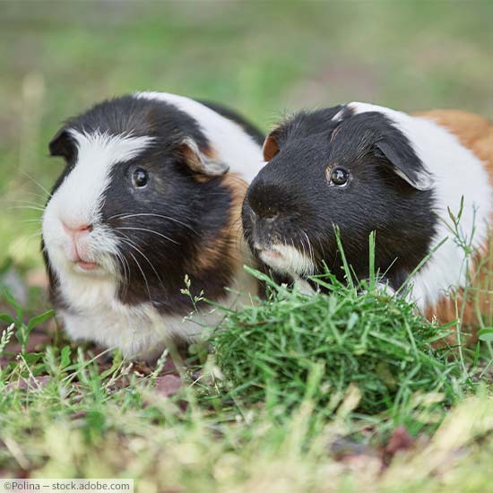 Zusätzlich zum Heu sollten Frischfutter und getreidefreies Trockenfutter angeboten werden. Als Frischfutter bietet sich strukturiertes Grünfutter an, z. B. Möhrengrün, Löwenzahn, Brennnesseln und Kohlrabiblätter. Auch Salate (kein Kopfsalat) und Gemüse wie Gurke, Karotte, Paprika, Tomate, Sellerie, Mangold oder Chicorée sind empfehlenswert. Achtung, Meerschweinchen haben ein erhöhtes Harnsteinrisiko! Aus diesem Grund sollten sie stark kalziumhaltige Futtermittel wie Luzerneprodukte, Kräuter und Brokkoli nur in sehr geringen Mengen fressen.