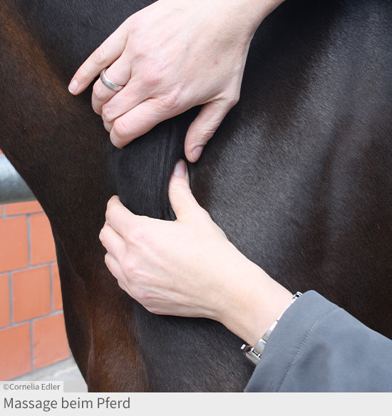 Die Massage kann bei vielfältigen Problemen des Bewegungsapparats beim Hund und zur Vorbereitung auf andere krankengymnastische Übungen angewendet werden. Dies gilt ebenso für Katzen, wobei der Erfolg hier sehr davon abhängig ist, ob das Tier kooperativ ist oder nicht. Auch bei Pferden ist eine Massagebehandlung sinnvoll, da hohe Leistungsanforderungen, orthopädische Probleme, Verletzungen oder schlecht sitzende Sättel zu Verspannungen führen können. Diese finden sich insbesondere im Bereich des Genicks sowie an der Hals- und Rückenmuskulatur.