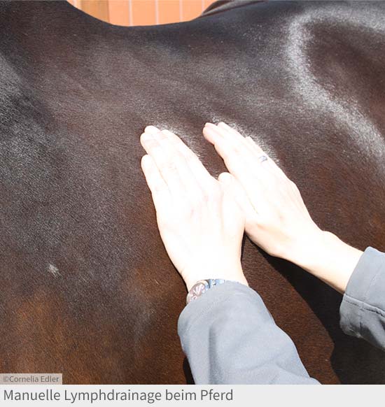 Beim Hund und eingeschränkt auch bei der Katze kann die manuelle Lymphdrainage bei sicht- und fühlbaren Lymphflüssigkeitsansammlungen im Bindegewebe (Lymphödem im Zwischenzellraum) oder zur Prophylaxe von posttraumatischen und postoperativen Schwellungen erfolgreich eingesetzt werden. Sie ist aber nicht so stark verbreitet wie beim Pferd. Da Pferde sehr stark zu Flüssigkeitsansammlungen im Gewebe (Wassersucht/ Ödematisierung) neigen, bieten sich die manuelle Lymphdrainage und die physikalische Entstauungstherapie als erfolgreiche Therapiemethoden an. Besonders für das Pferd sind mittlerweile sehr gute Langzugstrümpfe erhältlich, die zum Teil sogar mit einem Reißverschluss für ein leichteres Anziehen versehen sind.