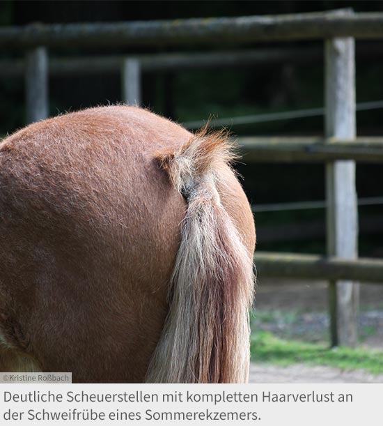 Ein Sommerekzemer benötigt sein Leben lang von März bis Oktober viel Aufmerksamkeit und Pflege, damit die Ausprägung der Erkrankung zumindest kontrolliert wird.