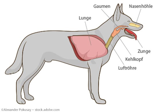 Ein gesunder Hund besitzt im Ruhezustand eine Atemfrequenz von ca. 40 Zügen/min. Beim Hecheln kann diese auf bis zu 300 Züge/min ansteigen. Anders als bei uns Menschen kommt es dabei jedoch nicht zu einer Hyperventilation, da Hunde viel flacher atmen können.