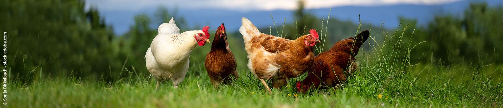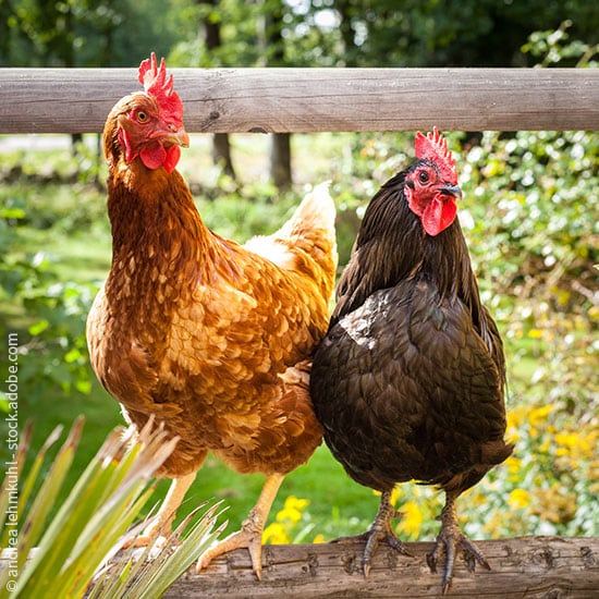 Eine herausragende Leistungsrasse sind Leghorns, welche mit besonders guten Eigenschaften für Legehühner glänzen. Der Name leitet sich von einem Hafen in Italien ab, aus dem die Engländer die Rasse importiert haben. Leghorns fließen in fast jeden Legehybriden ein, der weiße Eier legt. Geht es einem um den Braten, wären Deutsche Lachshühner eine gute Wahl. Diese sind besonders üppig und leicht zu rupfen.