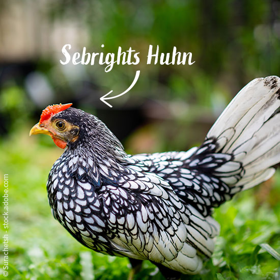 Wer handzahme Familienhühner sucht, kann es mit Orpingtons probieren. Die Legeleistung ist gut, allerdings geraten die schweren Hühner schnell in Brutstimmung. Geht es einem um exotische Zierhühner, wären Sebrights interessant. Bei diesen Leichtgewichten bilden die Hähne einen hennenfiedrigen Schwanz und sind am dicken Rosenkamm gut von den Hennen zu unterscheiden.